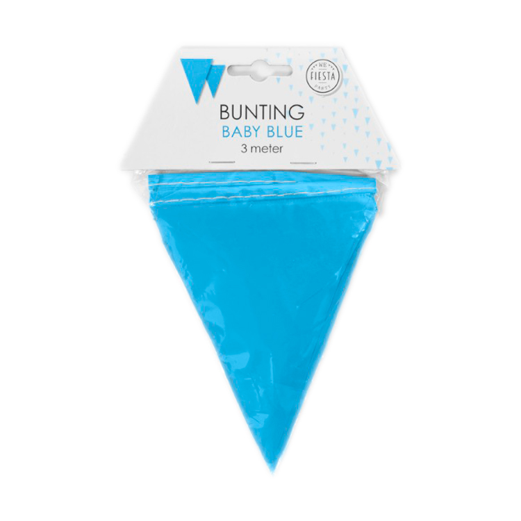Festlig og farverig Lyseblå lille vimpelbanner perfekt til enhver lejlighed – fødselsdage, konfirmation, sommerfester eller temafester! Den er 3 meter lang og skaber en iøjnefaldende dekoration, der garanterer feststemning.