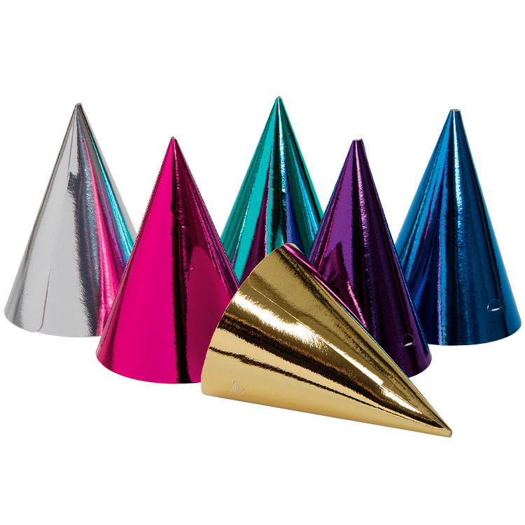 Disse partyhatte i metallic farver skaber straks festlig stemning. Hattene kommer i et blandet udvalg af flotte farver og er nemme at tage på.