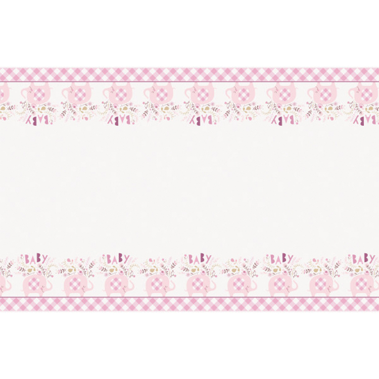 Gør dit babyshower eller din barnedåb endnu sødere med denne yndige plastik dug dekoreret med en charmerende lyserøde elefanter og blomsterdetaljer.