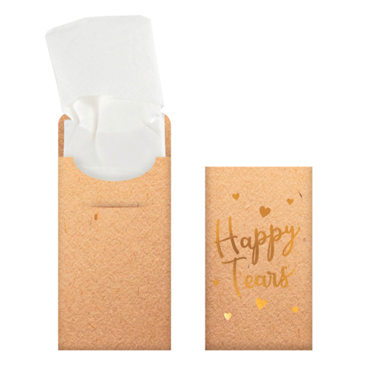 En fin kuvert til lommeletter med teksten Happy Tears. Perfekt til bryllupper, konfirmationer eller andre særlige øjeblikke, hvor glæden får tårerne frem. En enkel og sød detalje, der viser omtanke og skaber minder.