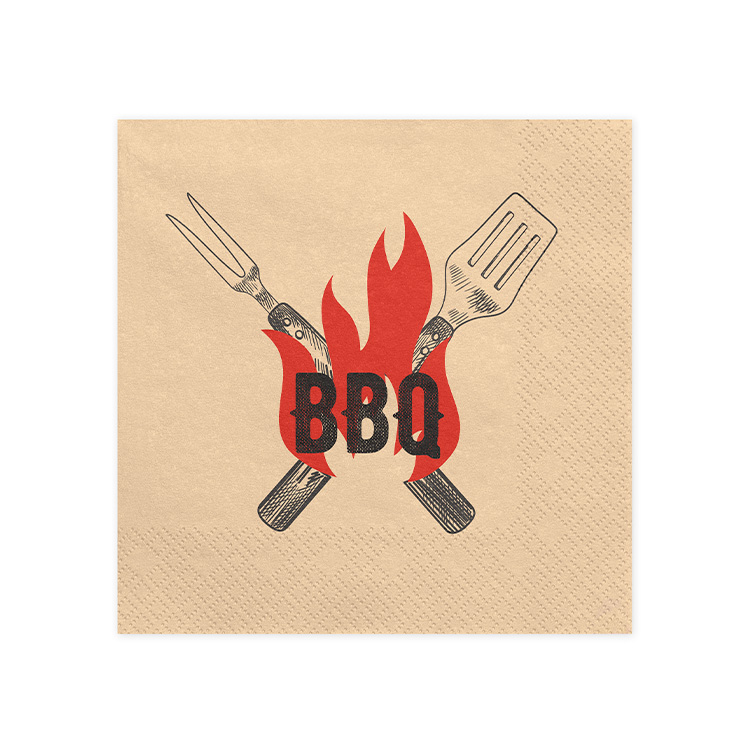 Disse BBQ-servietter er det oplagte valg til sommerens sammenkomster. Med deres rustikke design i både lyse og mørke nuancer passer de perfekt til et dækket bord i haven eller på terrassen.