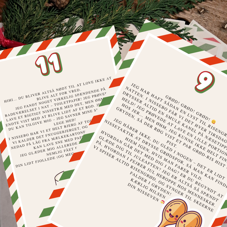 Gør december til noget helt særligt med vores 24 dage fyldt med nisseballade, små skøre drillerier og magiske historier! Hver dag får dit barn et brev fra nissen, der bor hos jer for en stund.